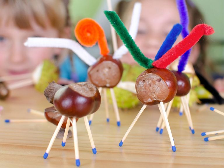 - Für Geübte: Aus Kastanien und Eicheln kleine Figuren basteln oder Ketten herstellen. Die Früchte müssen vorher mit einer spitzen Nadel angebohrt werden - Vorsicht, Verletzungsgefahr!